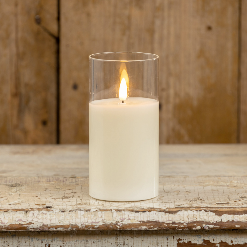 Bring the warmth and ambiance of candlelight to your living room, bedroom or create a relaxing spa atmosphere in your bathroom without the mess and safety risks of real wax. Our Glass Flameless Candle features a realistic flickering flame within a glass vessel. Features include a 6 hour timer with an on/off button.