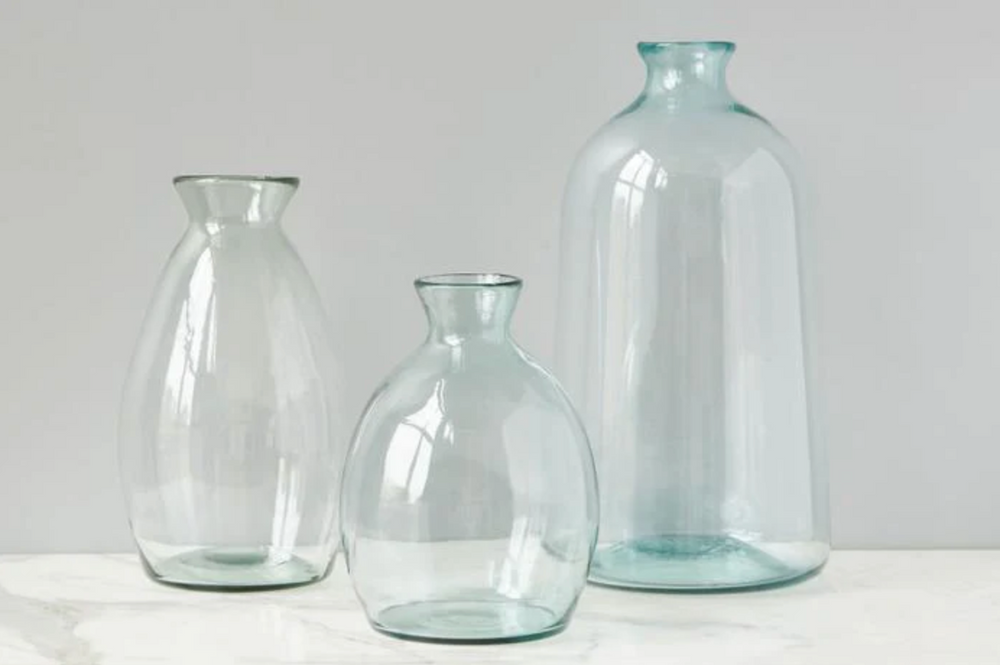 The Medium Artisanal Glass Vase is made by European artisans, each mouth blown into molds from recycled glass sourced from around Europe. The free form of the vessel ensures it is perfect as a singular decorative accent piece