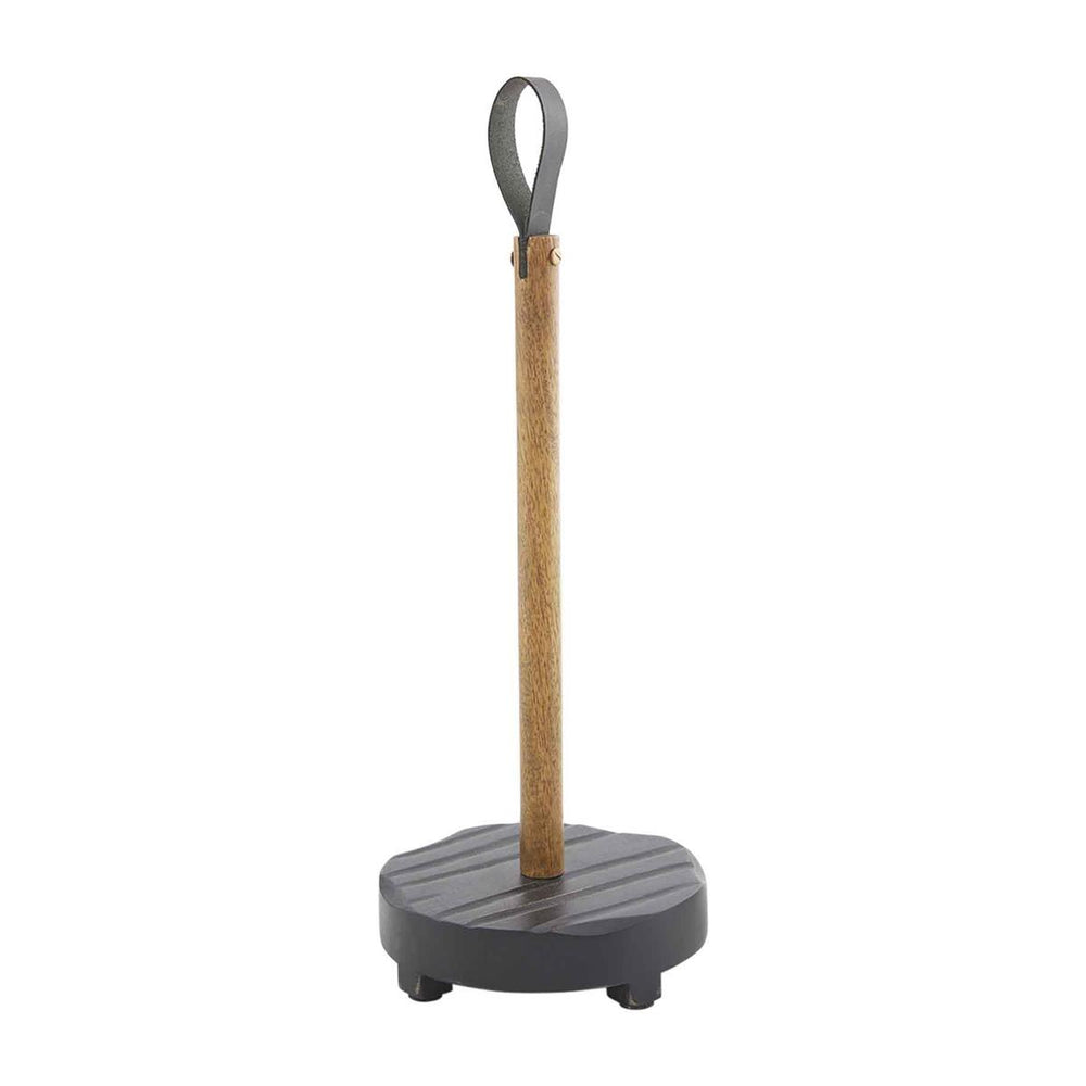 Stylish and functional, our Black Paper Towel Holder adds a touch of modern farmhouse charm to your kitchen. It features a sleek black shiplap-style base, a warm mango wood dowel, and a faux leather finial loop for a subtle, elevated detail. The blend of textures and materials creates a refined, rustic look perfect for keeping your countertop organized with understated style.