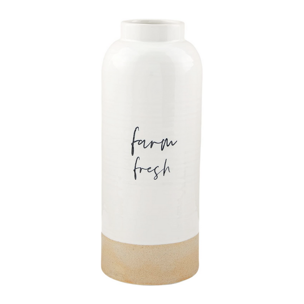 Perfectly neutral and effortlessly charming, our Farmhouse Style Vase blends glazed and unglazed stoneware for a timeless look. This versatile vase adds organic texture and warmth to any space. Watertight
