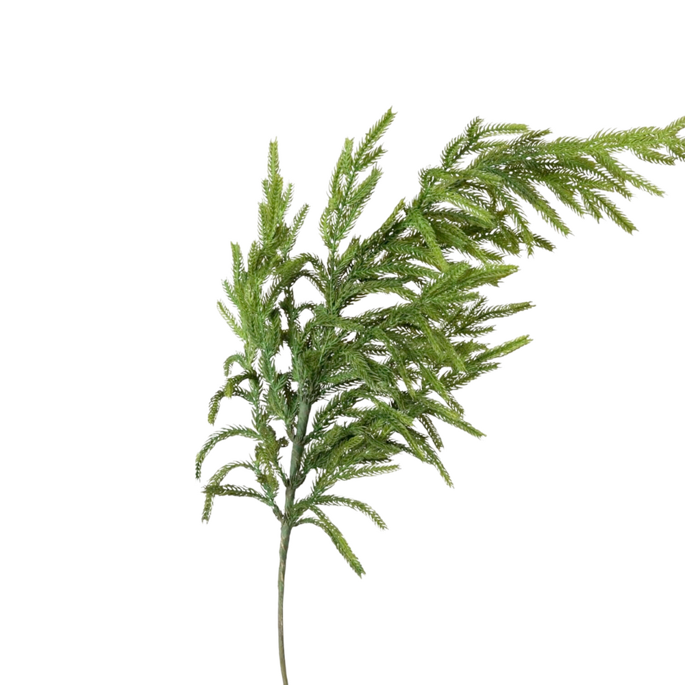 Transform your home into a cozy winter wonderland with our Natural Touch Glittered Norfolk Pine Spray. Its vibrant color, natural texture and organic shape will bring the beauty of a snow-laden forest right into your own living space. The wired stems are highly concentrated, heavier in weight and easy to manipulate giving them an incredibly realistic appearance. Display in a centerpiece arrangement elevating your winter decor. Sold individually. (Props not included)