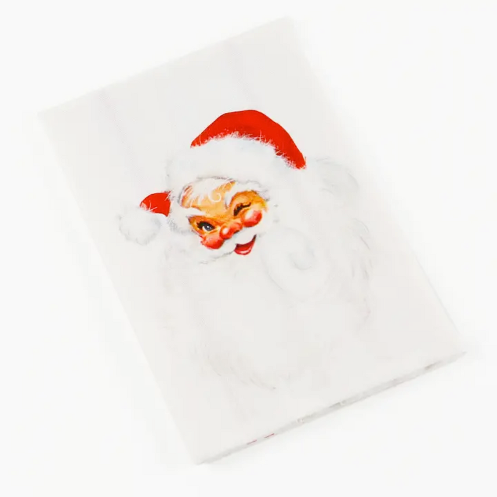 Bring a touch of nostalgic Christmas cheer to your home with our Set of 2 Vintage Santa Tea Towels. Each design features jolly, cherub-faced Santas with rosy cheeks, fluffy white beards, and bright red hats that capture the magic of the season. Perfect for hanging in your kitchen, lining a bread basket to keep fresh bakes warm, or styling as festive napkins for your holiday table. (Props not included.)