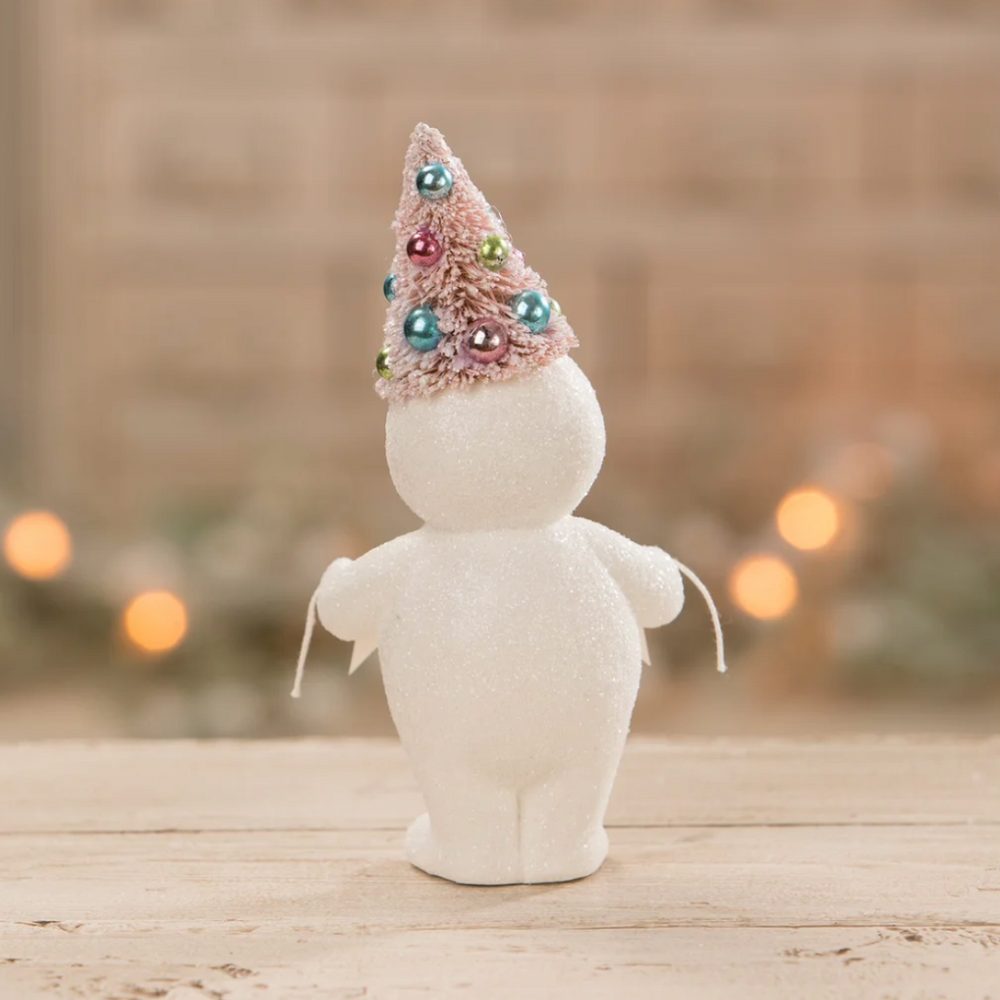 Retro-inspired and full of charm, our adorably chubby Pastel Merry Snowman is a festive delight! Hand-painted in soft pastel hues, she features a colorful bottle brush tree perched on her head and holds a playful “MERRY” banner in hand. A whimsical addition to your holiday decor that’s sure to bring smiles. Also available: Pastel Candy Cane Snowman, collect both for an extra dose of vintage holiday cheer year after year!