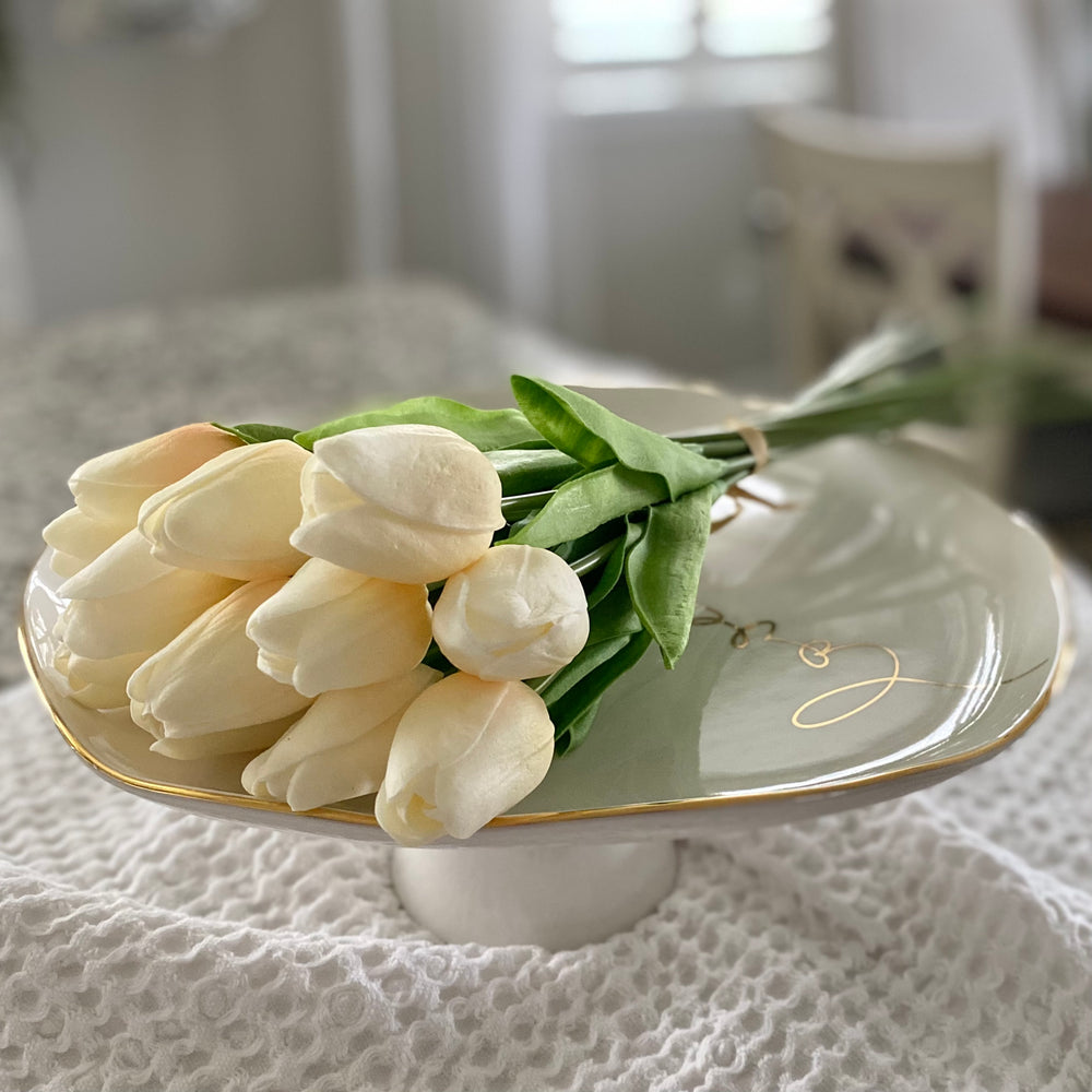 The bundle includes 12 stunning tulips, each carefully tied with a charming paper bow. Whether displayed as a bouquet or separated to accent different areas of your home, these tulips are versatile enough to suit any setting. You’ll love the way they look - and feel - so lifelike, you might even be tempted to add water!