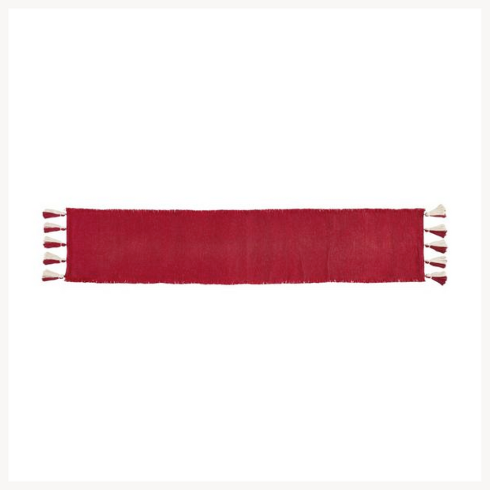 Chunky Tassel Red Table Runner
