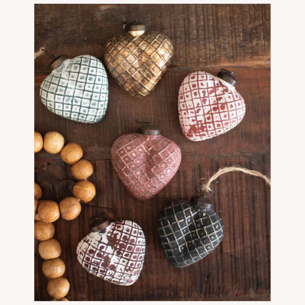 Set of 6 Colored Glass Heart Ornaments are perfect for adding a little rustic style to your decor. Each glass heart features a unique hue in a matte finish. 3 are opaque and 3 are translucent. The set includes one of each color. They make thoughtful gifts too. Present a heart to a friend on their birthday or Galentine's Day to let them know how much they mean to you!