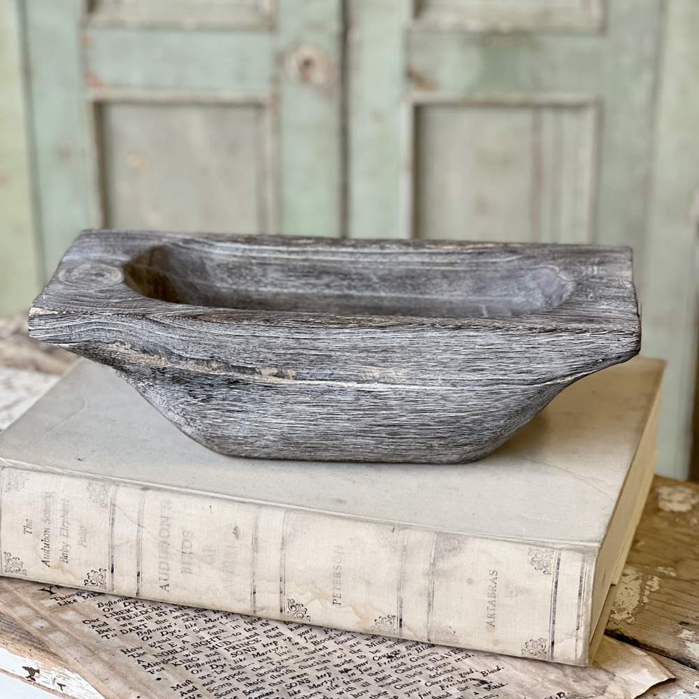 The Sylvan Trencher features a beautiful whitewashed finish, adding a touch of rustic charm to your space. Natural imperfections only enhance its character, making it a standout decor piece. A perfect blend of beauty and functionality, change decor seasonally. Each piece will vary. (Props not included)