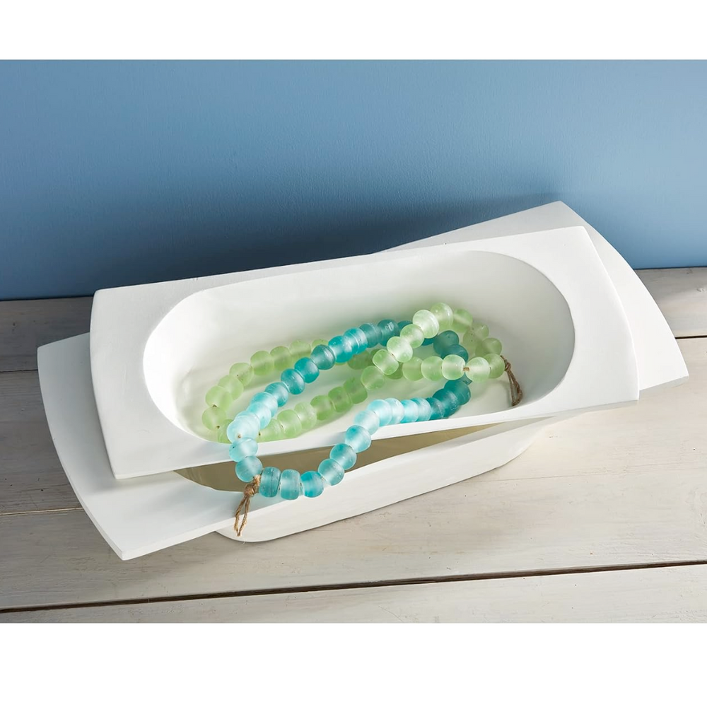 Add a splash of coastal charm to any space with our stunning Glass Beads, delicately strung on rustic jute twine. Perfectly versatile, they can be styled on the neck of a favorite vase or lamp, draped over a decorative book, or placed on a dish to elevate your coffee or console table. Available in serene sea green and light blue hues, each strand is sold individually. These beautiful beads also make for memorable, thoughtful gifts! (Bowls not included.)