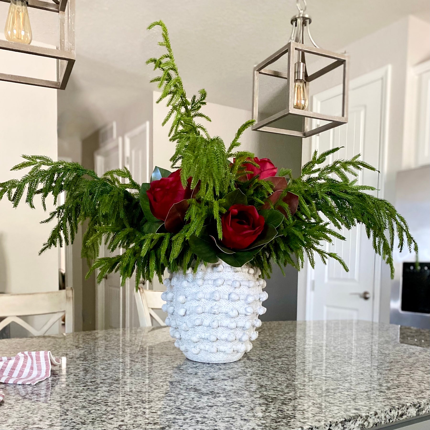 Add a touch of opulence and drama to your holiday decor with our faux Dark Red Magnolia Stem. This classic winter floral features a gorgeous eye-catching crimson red bloom and stunning large, lush foliage. It's sure to make a statement whether used as a stand alone centerpiece or displayed with other florals for a touch of vibrant color. It will effortlessly elevate the elegance of any arrangement. Sold individually. Featured with our Honeycomb Champagne Mercury Glass Fluted Vase